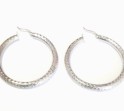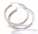Pair of 14K white gold high polish indented hollow circle hoop earrings.