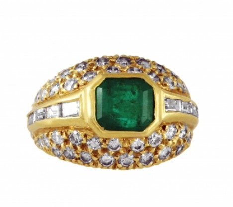 Emerald and Diamond Ring set in 18K Yellow Gold, Emerald weights 1.50cts., diamonds +/- 2cts. approx.G/SI1 quality,