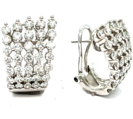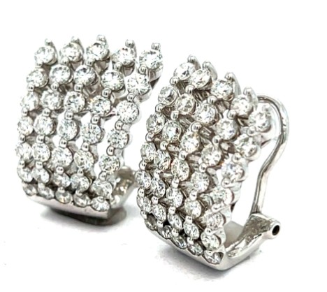A Stunning pair of 18K white gold 5-Row Cascading Diamond Earrings with friction posts and omega backs.