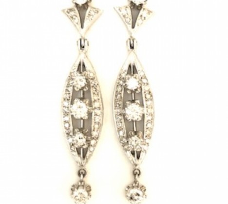 Elegant 14K white gold Hanging Diamond Earrings contain 10 full cut diamonds and 52 single cut diamonds