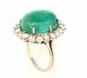 A Great Cocktail Ring for any special occassion, we have a Platinum Cabachon Emerald & Diamond Ring.