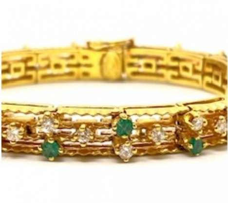 La Triomphe 18K Yellow Gold Emerald & Diamond Link Bracelet.