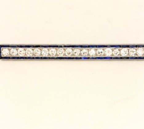 Beautiful Art Deco Platinum Diamond & Sapphire Bar Pin.