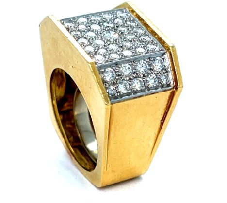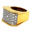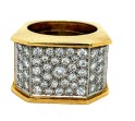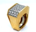 18K Large Yellow Gold Diamond Cocktail Ring. Six sided large cocktail ring with