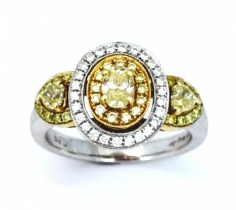 and 1 center yellow oval brilliants diamond weighting approx. .30ct. t.w..