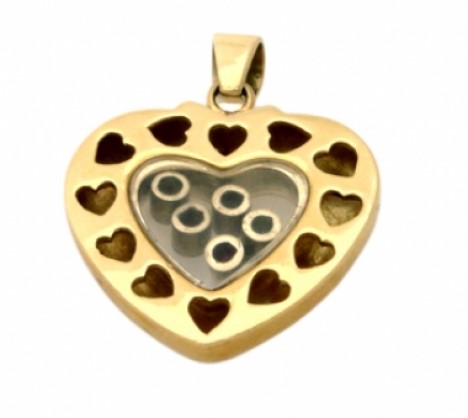 18K Yellow Gold "Happy Stones" Heart Pendant with Bezel Set.