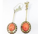 9K Yellow Gold Red Coral Dangling Earrings with 2 Oval Red Coral
