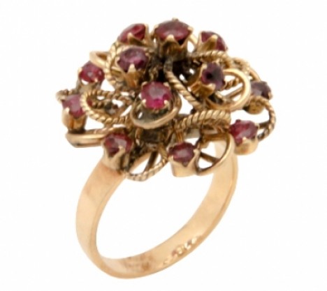 14K Yellow Gold Ruby Cluster Cocktail ring with