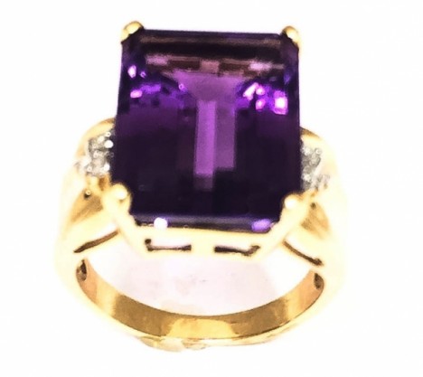 14K Yellow Gold Amethyst and Diamond Cocktail Ring with