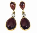 2 Old European cut diamonds totaling approximately .40ct., J/VS quality. Also contains 4 pear shaped cabacohon garnets measuring