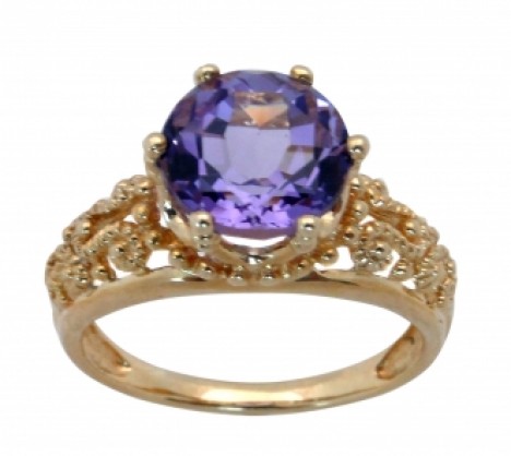 10K Yellow Gold 6 Prong Amethyst open work ring.