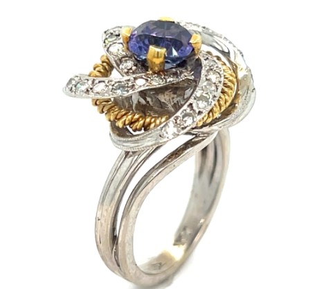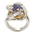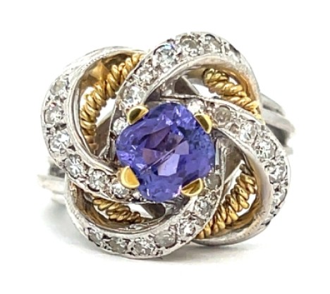 Two Tone 14K Tanzanite and Diamond Bow Ring with 1 center