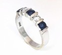 14K White Gold Gemlock Set Sapphire & Diamond Wedding Band with 3 round sapphires