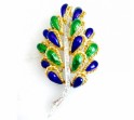 18K Italy Yellow Gold blue and Green Enamel Diamond Leaf Pin with