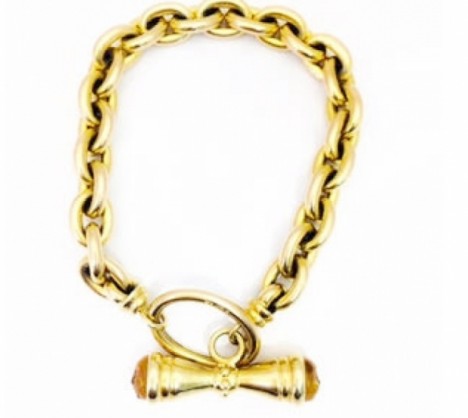 Italy 14K Yellow Gold Toggle Bracelet with Oval Links and carved Citrine Tips.