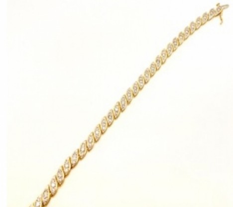 14K Yellow Gold Diamond "S" Bracelet with 90 round brilliants +/- 3.50cts.,K/SI2-3 quality.