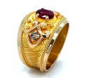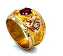 Negin Mirsalehi 18K Yellow Gold Byzantine Style Ruby & Diamond Ring with 1 center