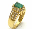 14K Yellow Gold Emerald & Diamond Cocktail Ring with 24 Channel Set and 12 Prong