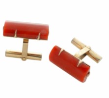 18K Yellow Gold Ruby and Diamond Cuff Links