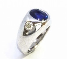 Gentleman's White Gold Natural Cabochon Star-Sapphire Ring