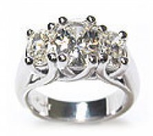1 Oval Cut diamond 2.64cts J/VS2 Set in a platinum mounting with 2 Oval Cut diamonds ~1.40cts tw.